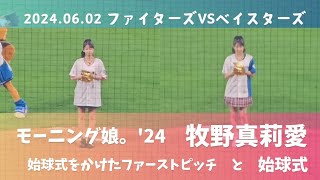 牧野真莉愛 エスコンで1日に2回も始球式?! 2024/6/26 牧野真莉愛 牧野真莉愛 エスコンで1日に2回も始球式?! 2024.06.02 横浜DeNAベイスターズ戦 試合開始前に行われたイベントのようす。 モーニング娘。’24の牧野真莉愛が始球式をかけ …